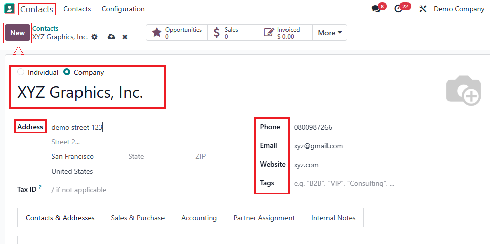 - Go to Contacts → Create New