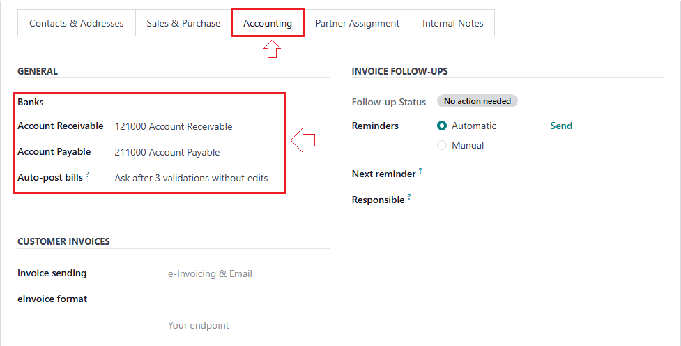 - Under “Accounting” tab, assign the correct receivable account