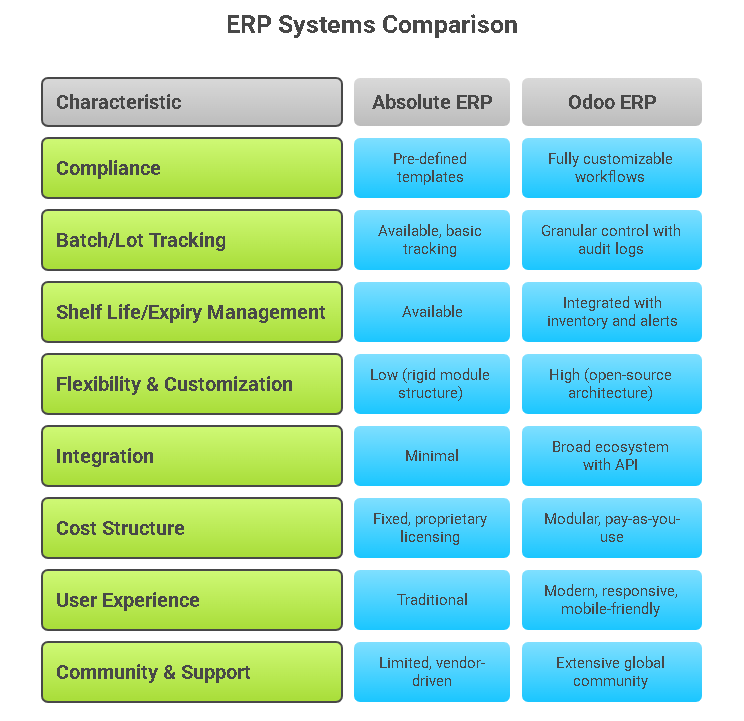 In 2025, two ERP contenders are gaining ground in the pharma space: Odoo, a modular open-source platform known for its versatility, and Absolute ERP, a pharma-focused proprietary solution.