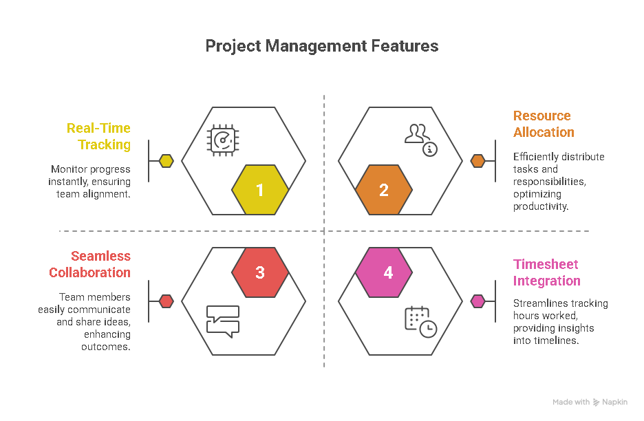 The system automatically tracks employee workloads, availability, and timelines. This helps managers assign the right resources to the right project, reducing burnout and improving efficiency.