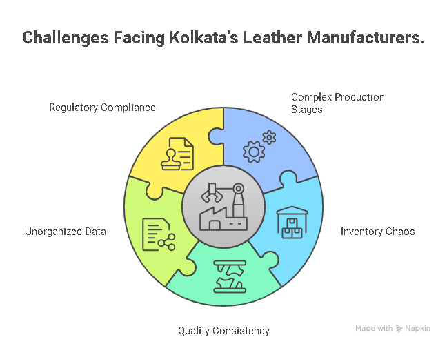 - Inventory chaos: Managing hides, chemicals, and finished goods manually leads to wastage and losses.