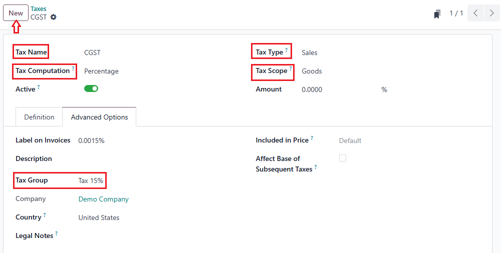 - Repeat this process to create tax rates for CGST, SGST, and IGST.