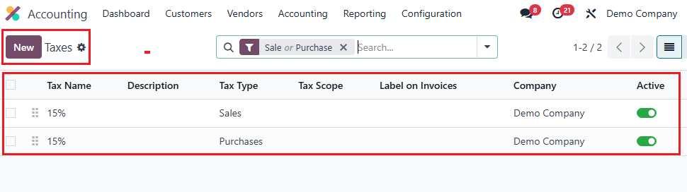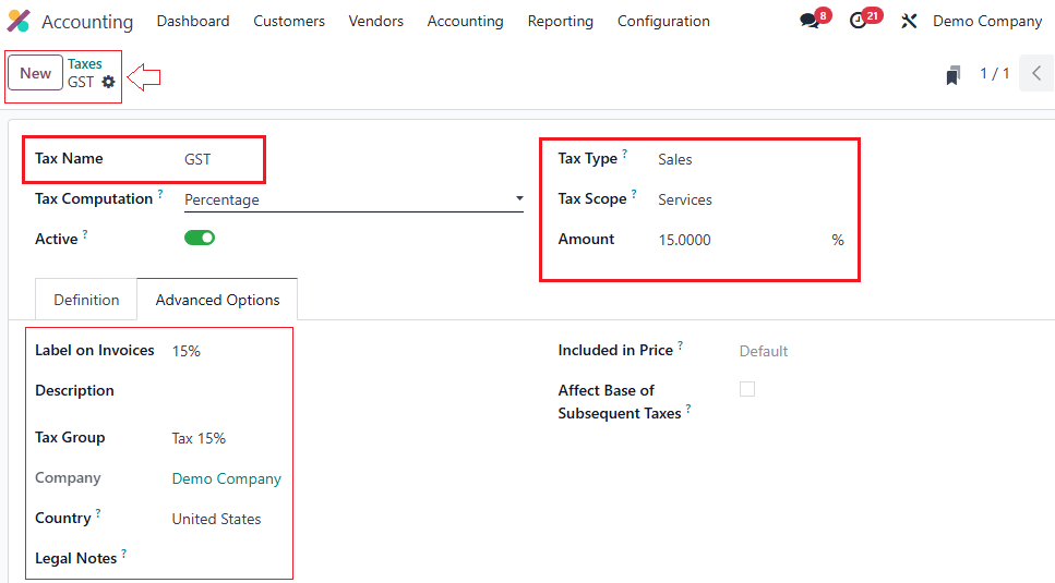 Odoo 18’s Accounting and Taxation module is designed to handle various types of taxes efficiently. Here are some key features:
