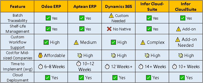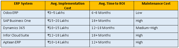 🧠 Insight: Odoo offers the best balance of cost and ROI — especially for Indian food manufacturers and exporters looking for a fast, scalable, and compliant ERP solution.